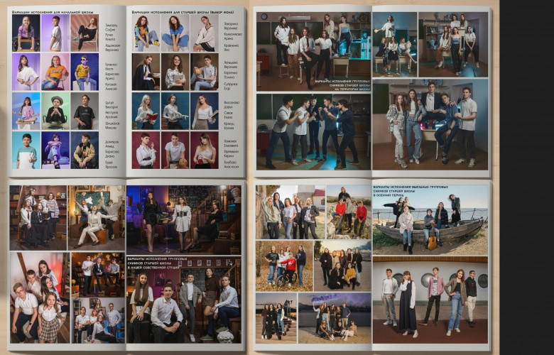Стоимость 2500₽Пакет 2: (Дополнительная групповая съёмка в школе. 5 разворотов) Стоимость 3200₽